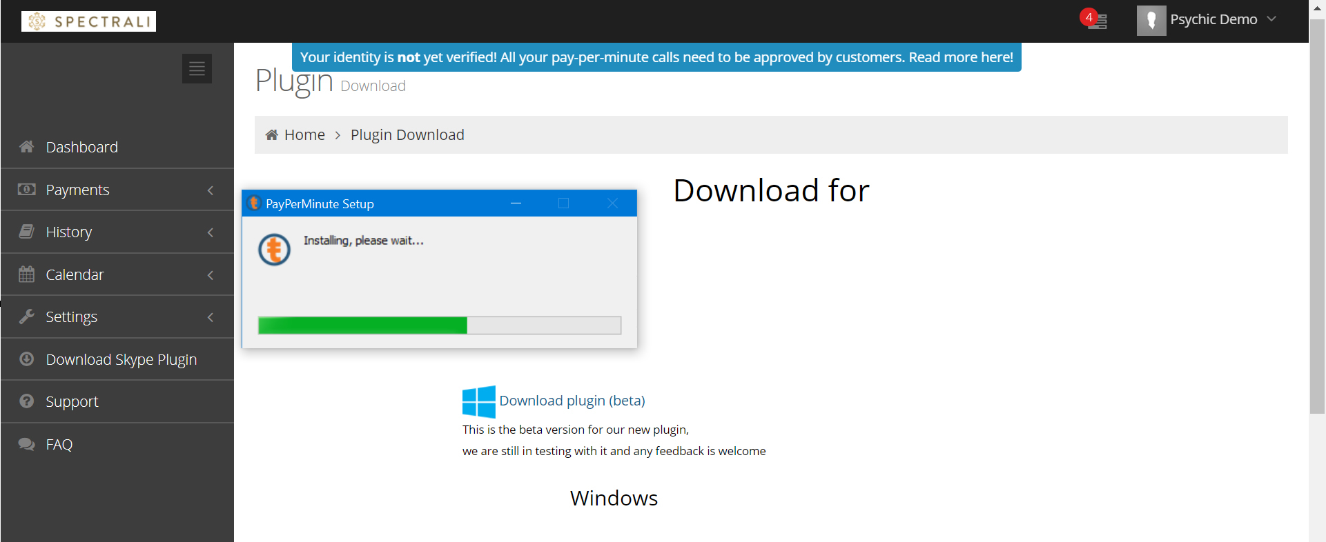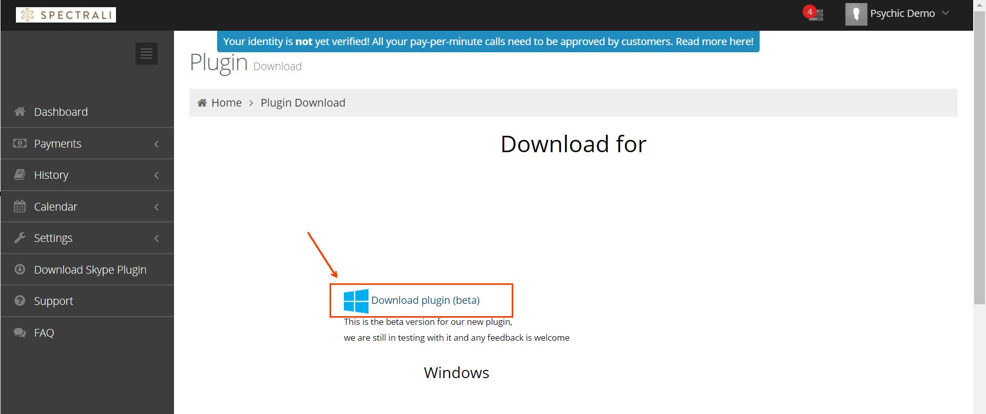 Click on “Download Skype plugin” on your dashboard.