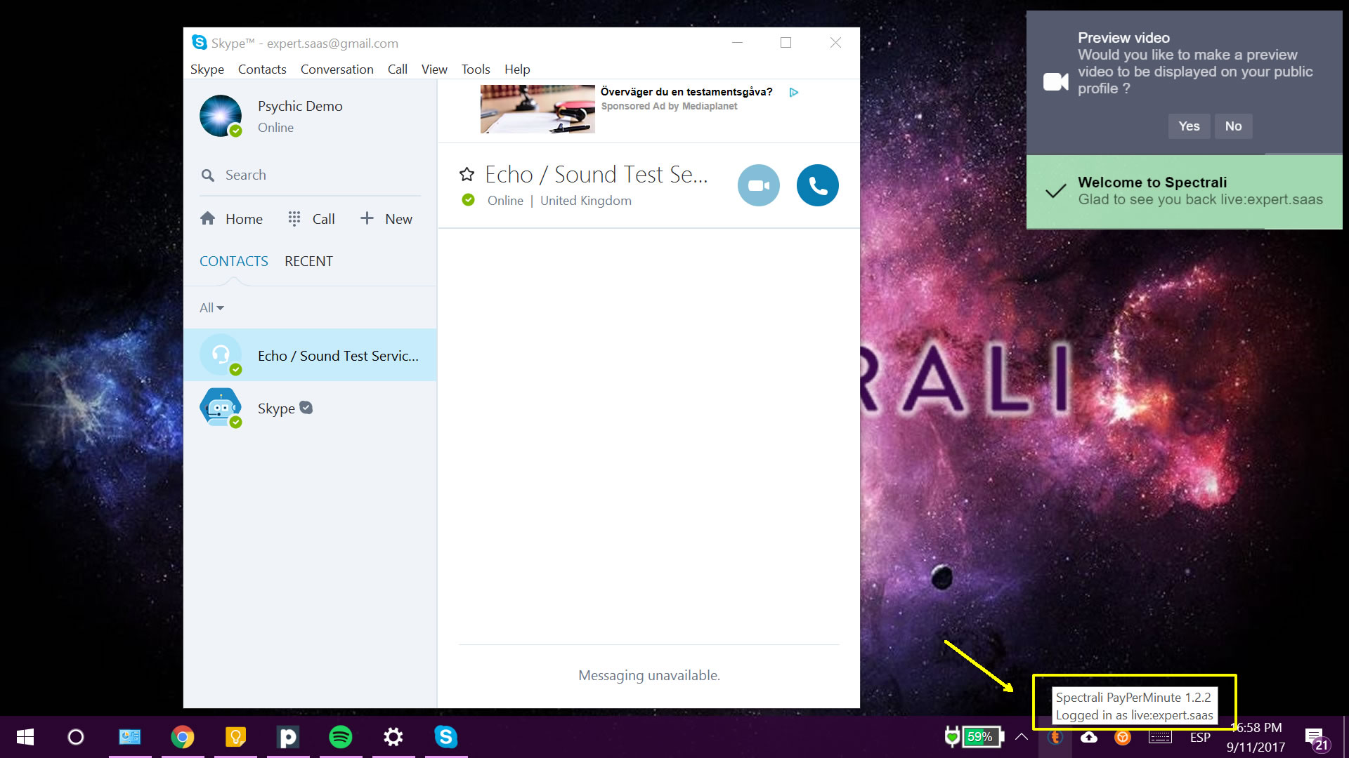 When you log out from your Skype account, you will also log out from the Spectrali Skype plugin.