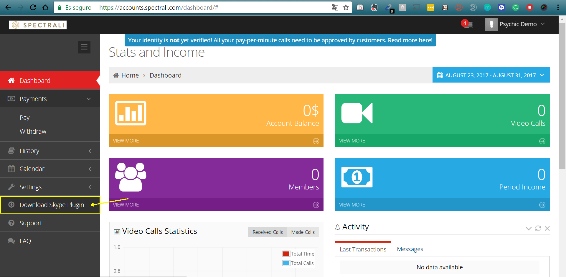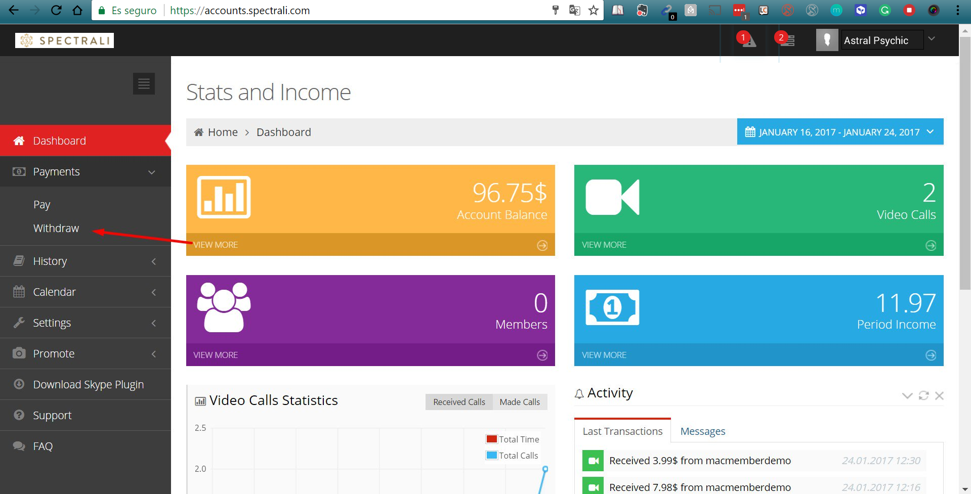 Go to https://accounts.spectrali.com and fill in your Skype ID and Spectrali password. You will be redirected to your dashboard.