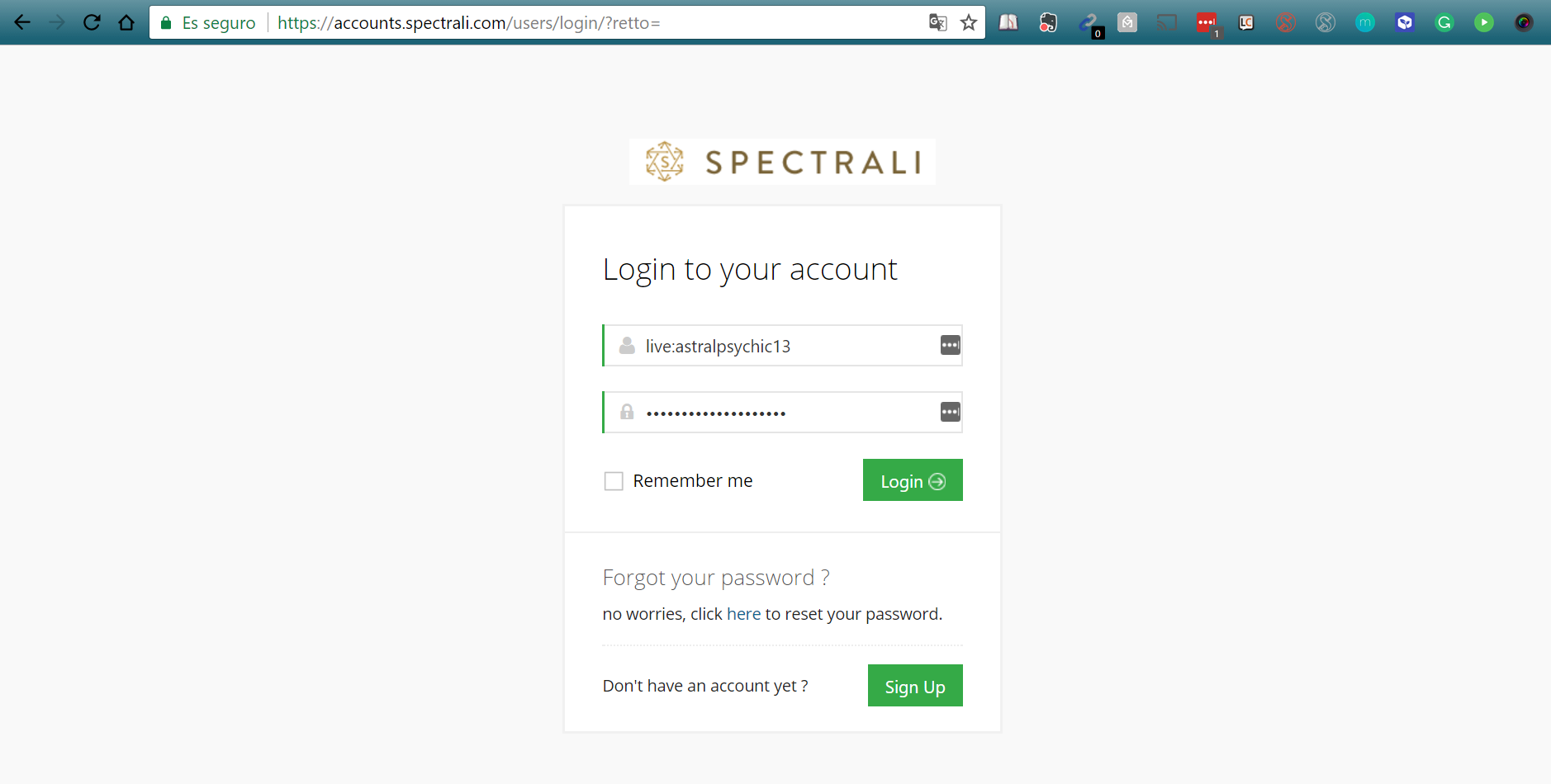 Login to https://accounts.spectrali.com using your Skype ID and the Spectrali password you have set.