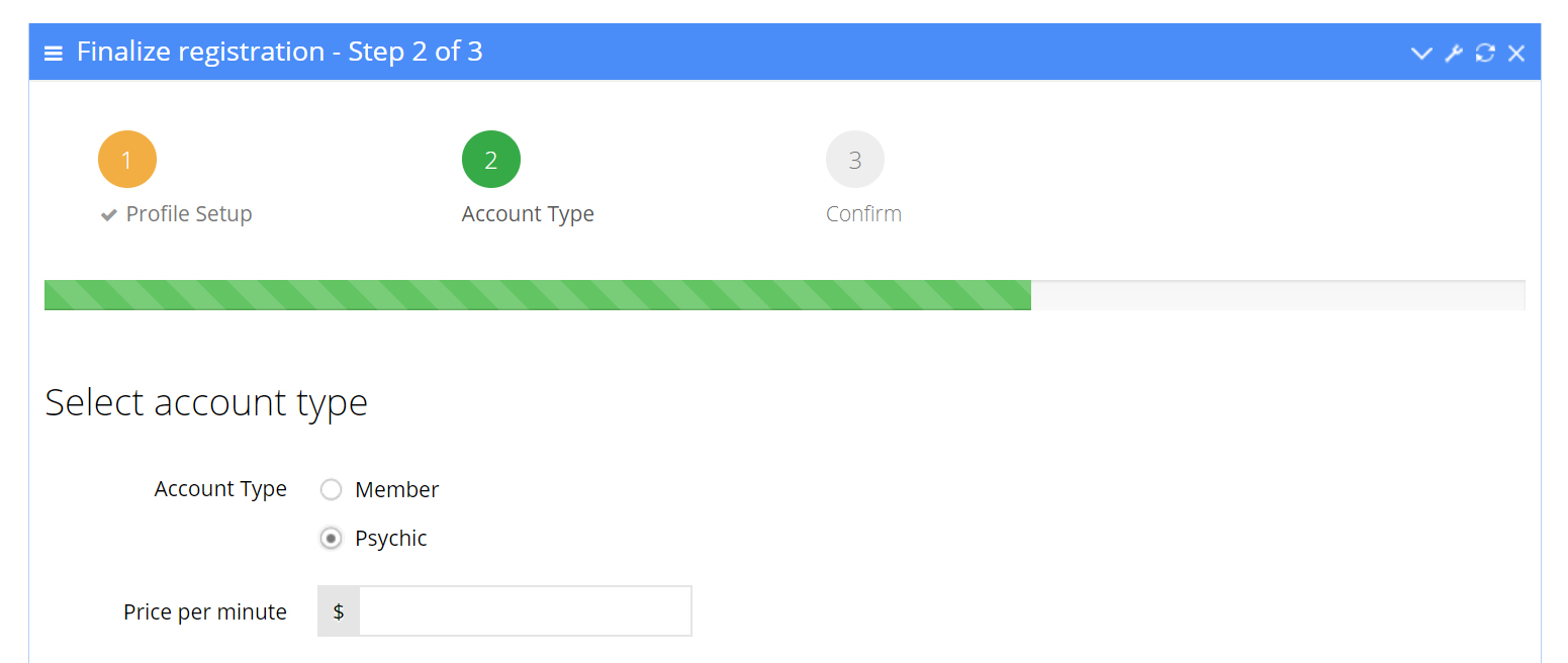 Select “Psychic” and a new field will appear after you’ve made the selection. You will have to provide your cost per minute and then click on “Continue” button.